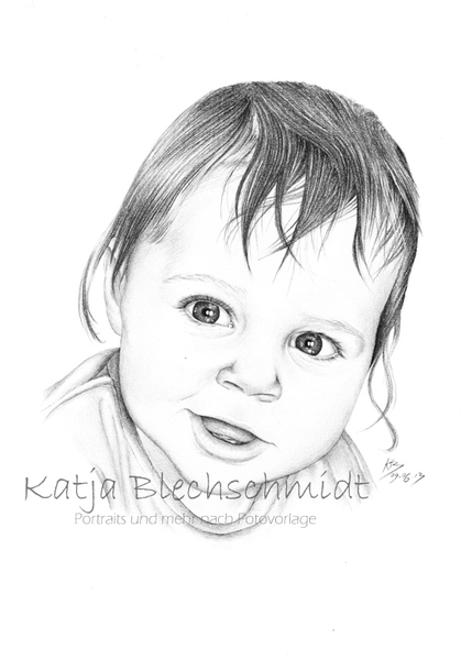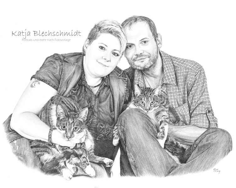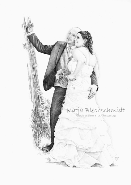Die klassische Bleistiftzeichnung ist eine sehr beliebte Variante für Portraits. Die Zeichnung wird mit Hilfe von verschiedenen Bleistiften, Radierern, Papierwischern und trockenen Pinseln hergestellt. Auf hochwertigem und stabilem Künstlerpapier können bei dieser Technik kleinste Details präzise ausgearbeitet werden.