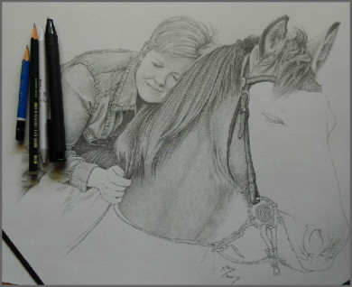 Um das Portrait vom Foto so originalgetreu wie möglich umzusetzen, werden kleinste Bilddetails gezeichnet.