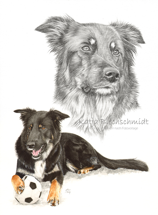 Diese Mischtechnik verbindet eine klassische Bleistiftzeichnung mit einem sanften Aquarell. Die Ausgestaltung erfolgt auf stabilem und hochwertigem Aquarellkarton. Dieser nimmt die Aquarellfarben